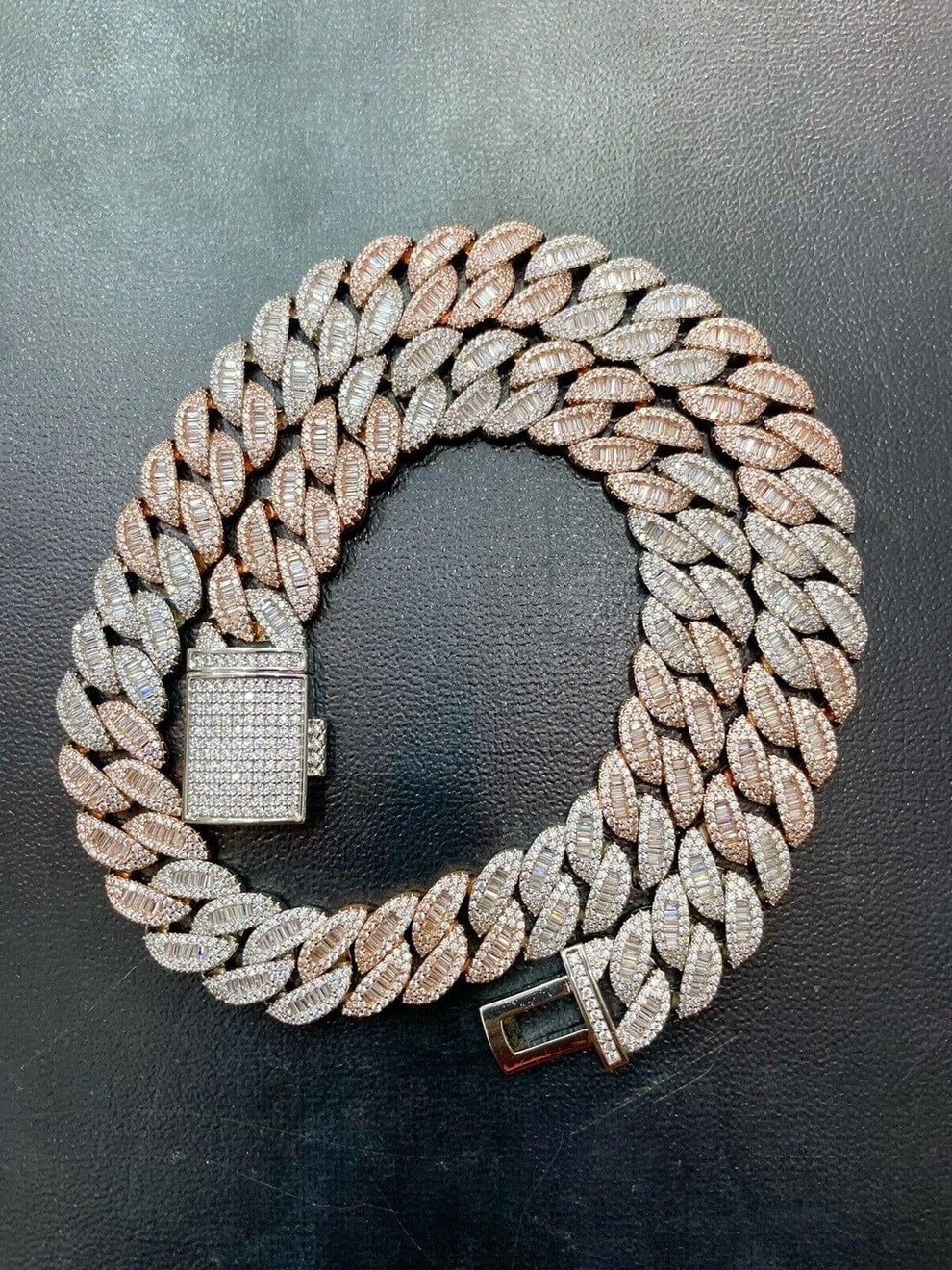 16MM Baguette and Round VVS Moissanite Miami Cuban Link Chain Necklace